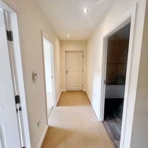 Upon entering you will be greeted by the bright and airy open plan living and dining room area, complete with a modern fitted kitchen featuring appliances such as a dishwasher, fridge freezer, washing machine and dryer. The apartment boasts two generoud bedrooms with the master bedroom enjoying an ensuite and plenty of natural light. The main bathroom includes a full size bath and overhead shower, along with ample storage space.